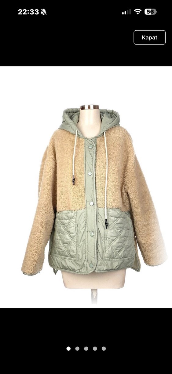 kapüşonlu uzun kollu iç göstermez Malzemeler Polyester Ölçüler Gögüs: 67cm, Uzunluk: 66cm Üç astarında yırtık vardır onun dışında herhangi bir sorunu yoktur