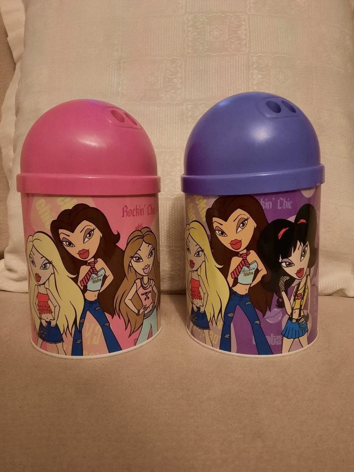 Yepyeni, pırıl pırıl, nostaljik çok amaçlı Bratz kutular. Kalem kutusu/çöp kutusu, hatta çöp kutusu olarak kullanılabilir. Teklifleri değerlendireceğim. #bratz #winx #barbie #lpsminişler #hellokitty #disney