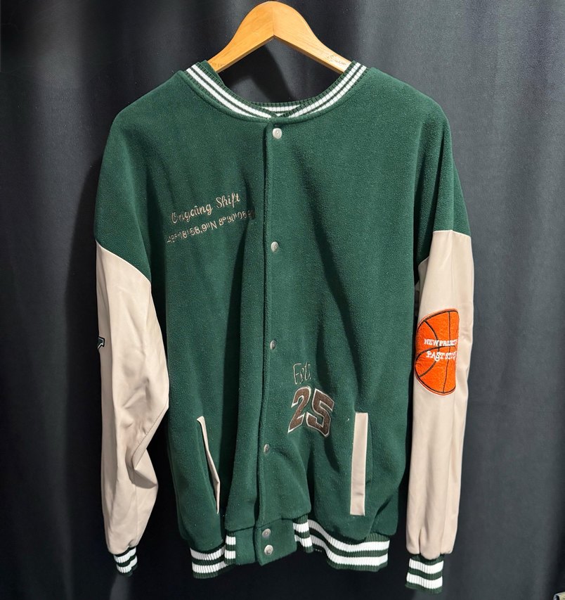 Vintage Ongoing Shift varsity/letterman tarzı bomber ceket – tam bir 90’lar-2000’ler streetwear klasiği! “Ongoing Shift” nakışı, “Est. 25” detayı… Sanki bir Avrupa basket takımı ya da özel proje parçası gibi duruyor, çok nadir ve cool! Beden: L-XL Uygun Durum: Temiz, vintage ürün