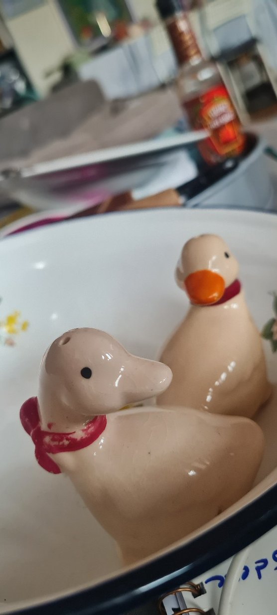 Vintage ördek tuzluk biberlik seti çok ama çok güzel tıpaları mevcut sadece birinin kurdelesinin biraz boyaya ihtiyacı var