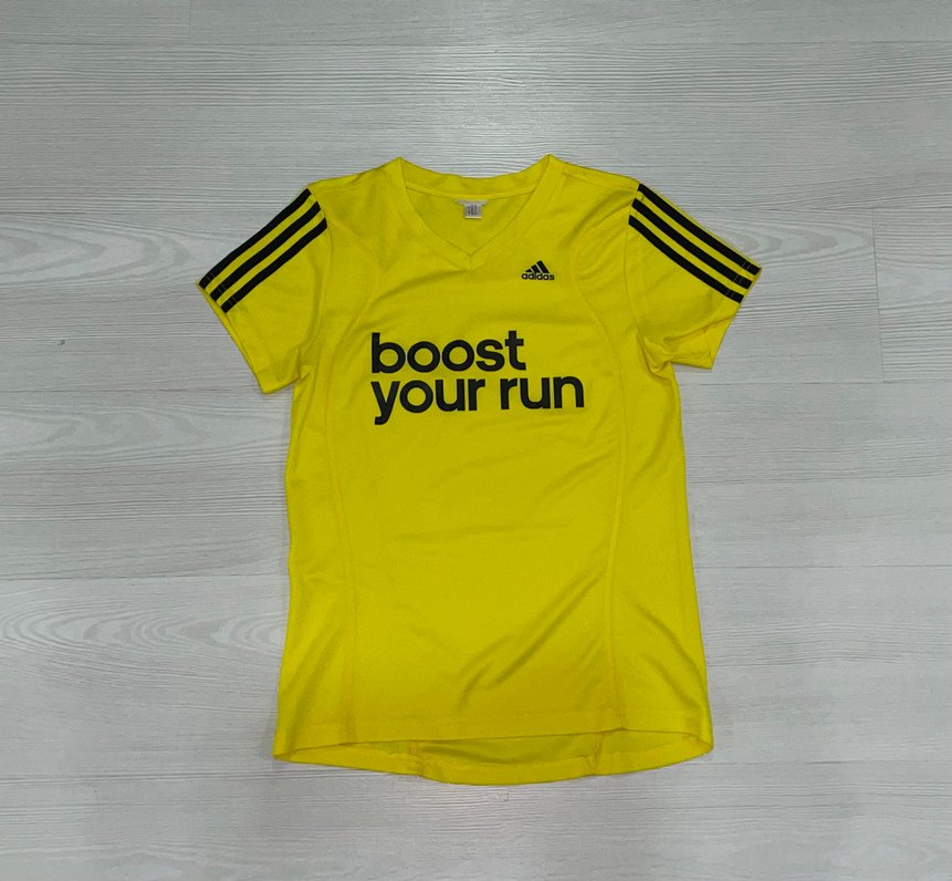 Adidas’ın ikonik “Boost Your Run” dönemine ait bu vintage running tee, 2013–2016 arasında popüler olan sarı–siyah retro koşu stilini yansıtır; omuzdaki üç çizgi ve büyük logo yazısı dönemin gerçek performans tasarımlarına sadık bir görüntü sunar; hafif ve nefes alabilen kumaşıyla hem koleksiyonluk hem günlük koşu ve spor kombinlerinde rahatlık sağlar; retro spor parçalara ilgi duyanlar için az bulunan, dikkat çekici bir modeldir; ürün temiz, sorunsuz ve orijinaldir.Orjinaldir . Ölçüleri kontrol edip alınız Tam 56cm , İki Koltuk arası 39cm , Kol 14cm