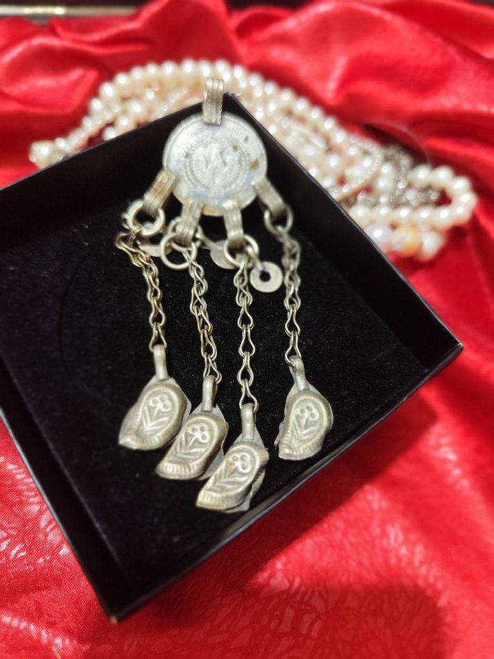 Bohem tarzı otantik Osmanlı eski bir parça bayan kolye ucu Düğün ve bohem tarzlar için işlemeli vintage tasarımlı, altın renkli kadın charmı, püsküllü detaylarla süslenmiş. ✨