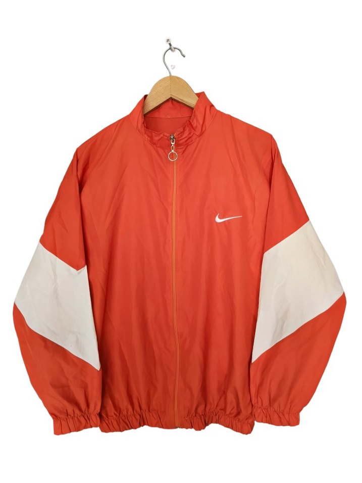 vintage oversize 90s Y2K yağmurluk . turuncu ana gövde, beyaz kol detaylarıyla tam bir klasik. Streetwear ve vintage koleksiyoncular arasında popüler, şu anki trendlerde de Y2K veya nostaljik athleisure olarak geçiyor . ince yagmurluktur