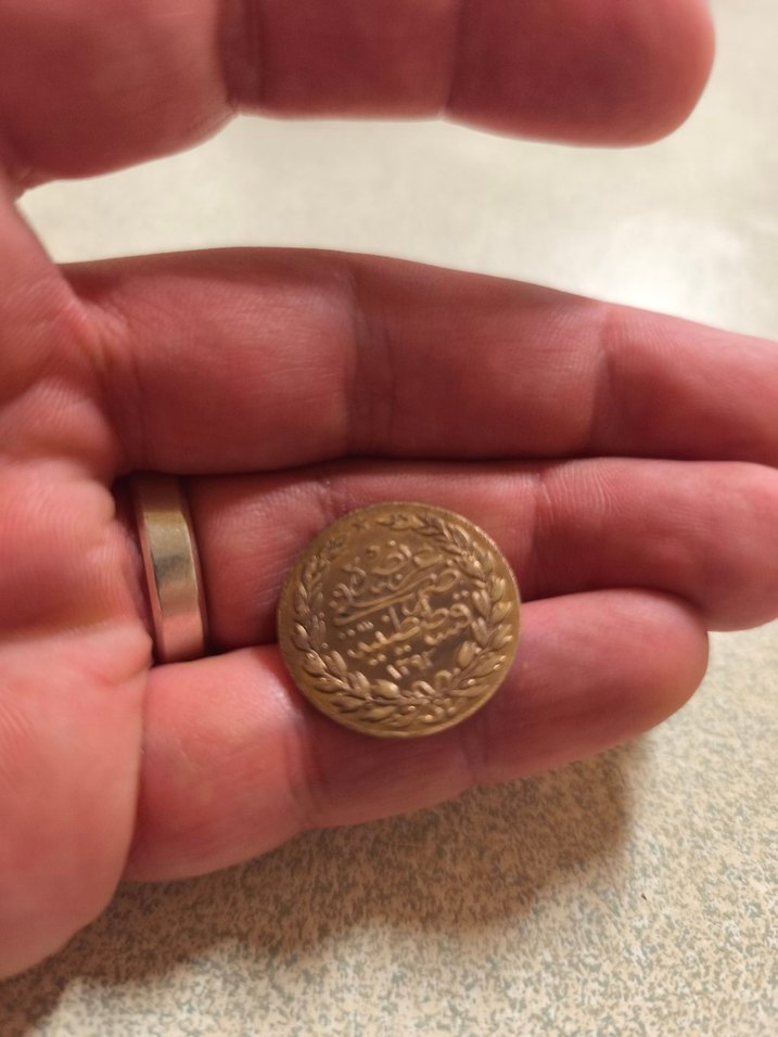 Parlak altın renkte, detaylı işlemeli vintage tarzda . Modest ve karşı kültür havası taşıyor. ✨