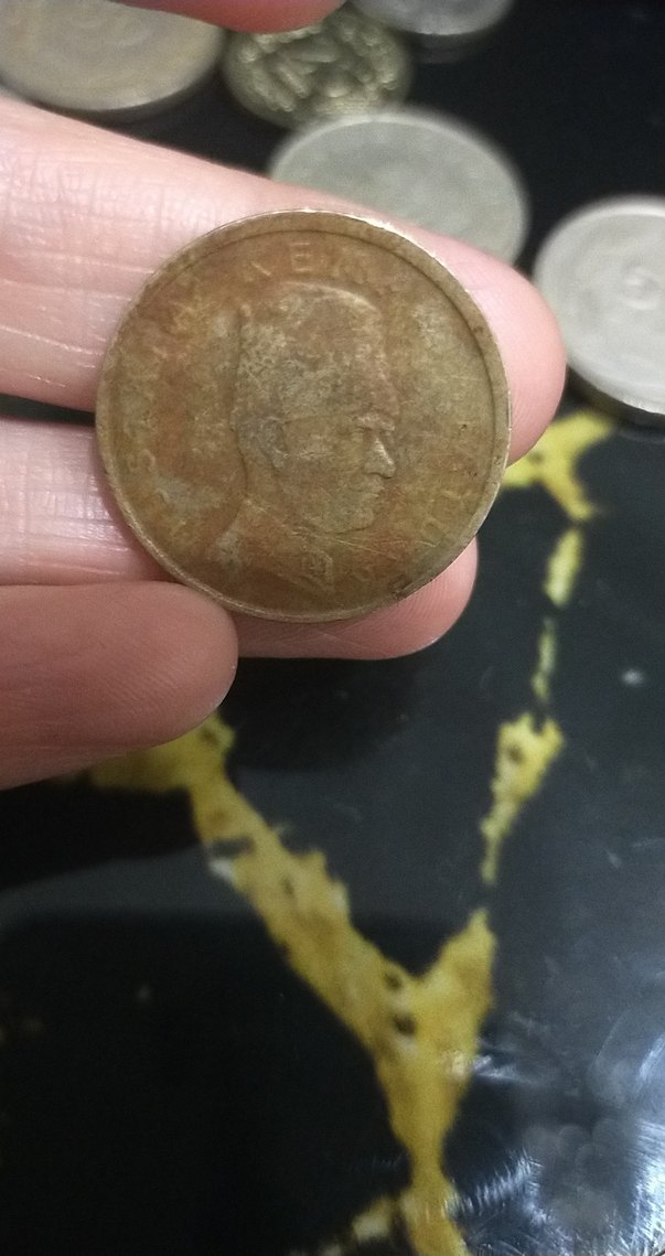 Parlak kahverengi vintage erkek rozeti, yıpranmış portre detayı ve karşı kültür tarzıyla dikkat çekiyor. ✨