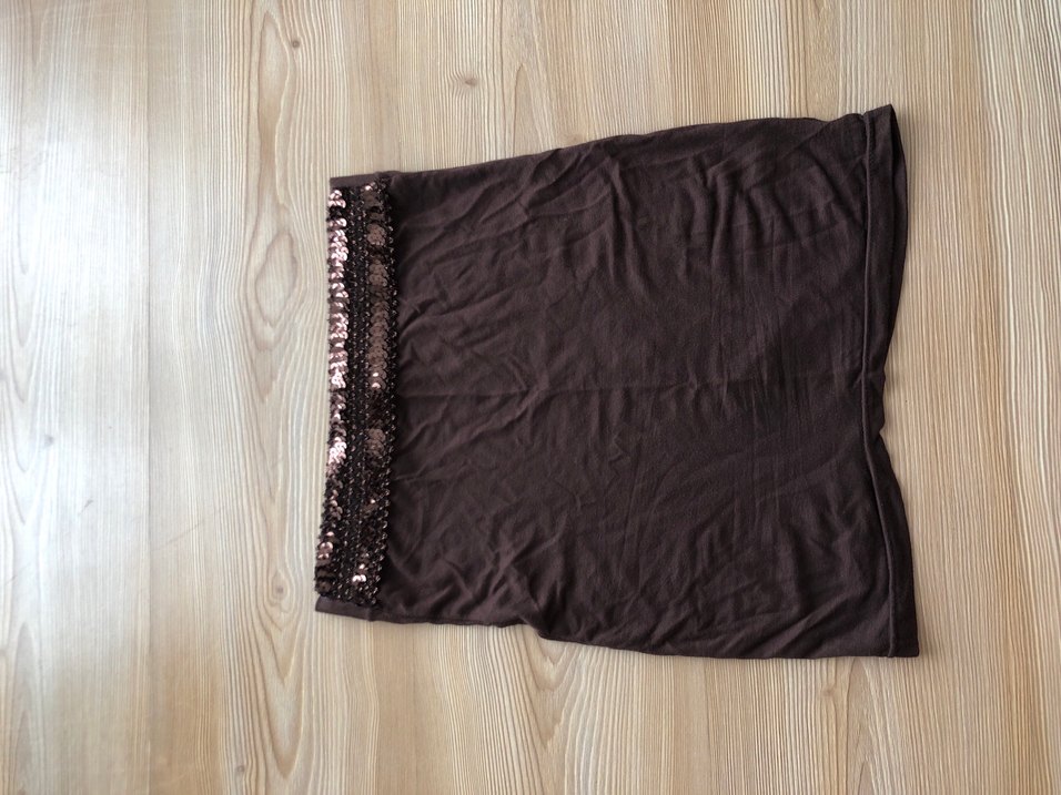 kahverengi payetli straplez üst aynı zamanda etek olarak da kullanılabilir herhangi bir defosu yok yeni