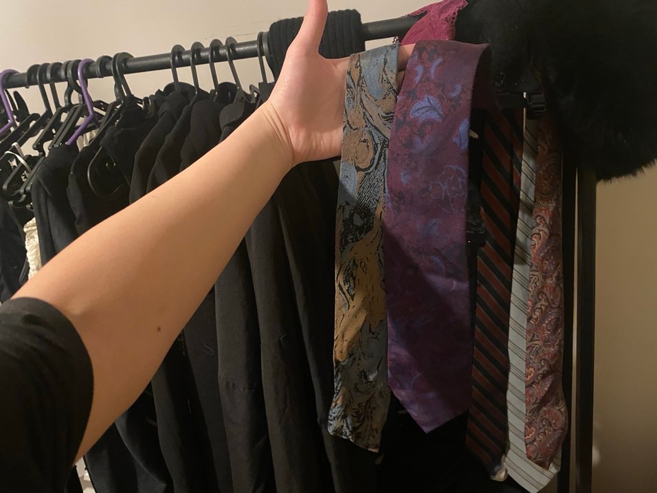 çok renkli, koyu tonlu, desenli kravat.