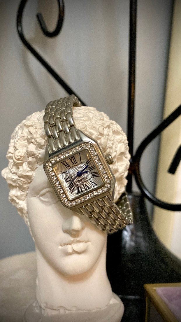 • Kasa Şekli: Zarif Kare / Dikdörtgen Kasa. • Kasa ve Kayış Rengi: Parlak Gümüş Tonu (Paslanmaz Çelik) • Parlak Taş Çerçeveli (Rhinestone/Zirkon) •Gümüş Tonlu Kare Kasa, Romen Rakamlı Kadranlı