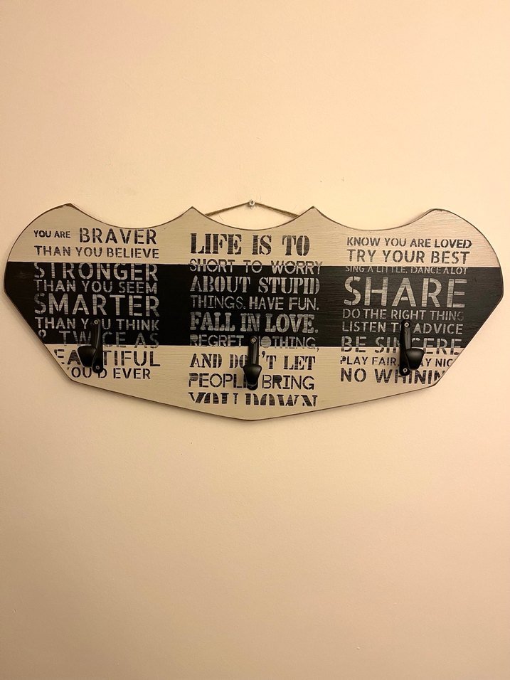 Rock punk havası taşıyan gri ve bej renklerde, ilham verici ve motive edici yazılar içeren vintage tarzda duvar panosu. El yapımı/Handmade ürün Ölçü; 29 cm * 67 cm Kalınlık; 18 mm Ürün Cinsi;Mdf 3 Kalın Askı