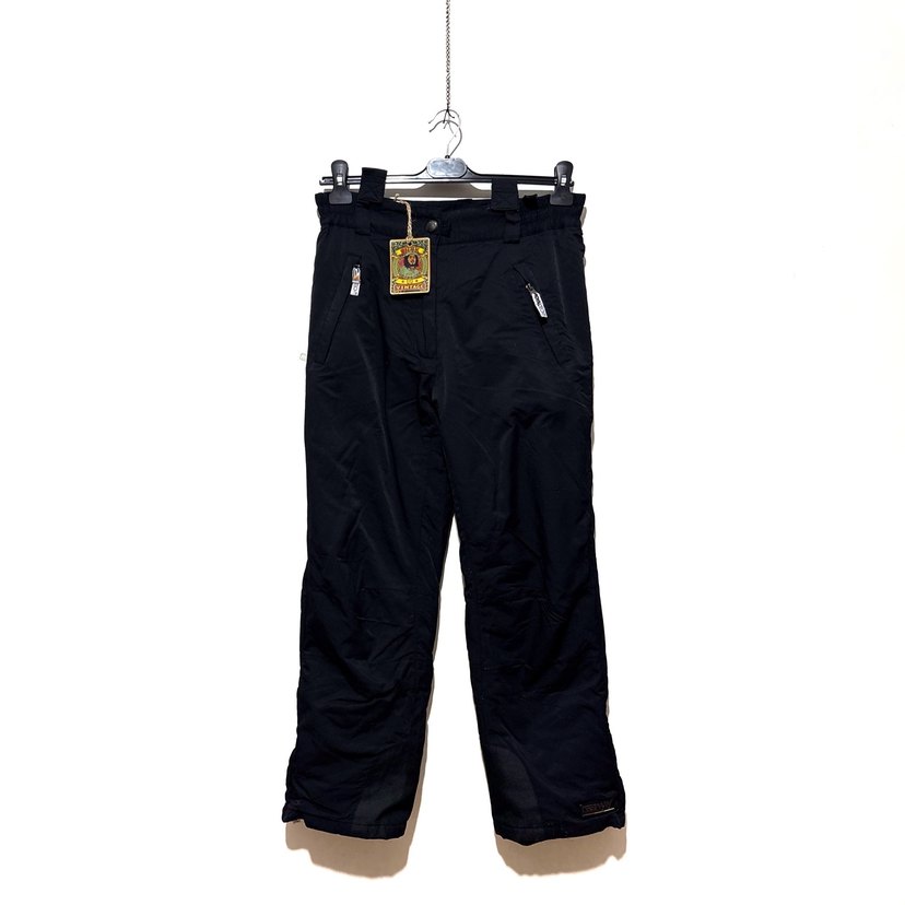 Erkek siyah kemerli kayak pantolonu, bol kesimli ve dış mekan kullanımı için yumuşak ve sıcak kumaştan yapılmıştır.