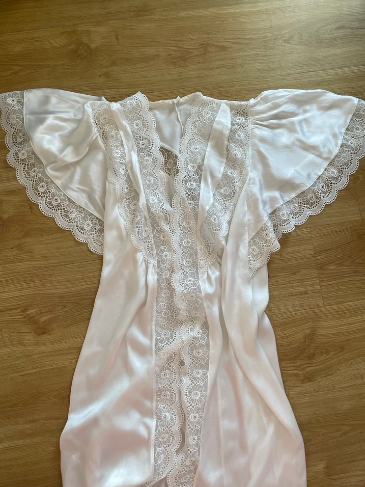Ölçüleri fotoğrafta mevcuttur. Çok şık kol detaylarına sahip. Bi kaç lekesi var alt taraflarda kalıyor. Güzel bi leke çıkarıcıyla çıkabilir ya da o kısımlar kesilip daha kısa. Bi model olarakta kullanılabilir. O nedenle fiyatı uygun tutuyorum. Rengi kırık beyaz tonlarında