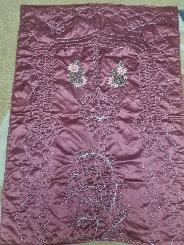 Bordo renkte, dantel detaylı ve çiçek işlemeli seccade. Parlak görünüme sahiptir ölçüler fotoğraflarda gösterilmiştir Alıcısına hayrlı olsunMakine işlemelidir