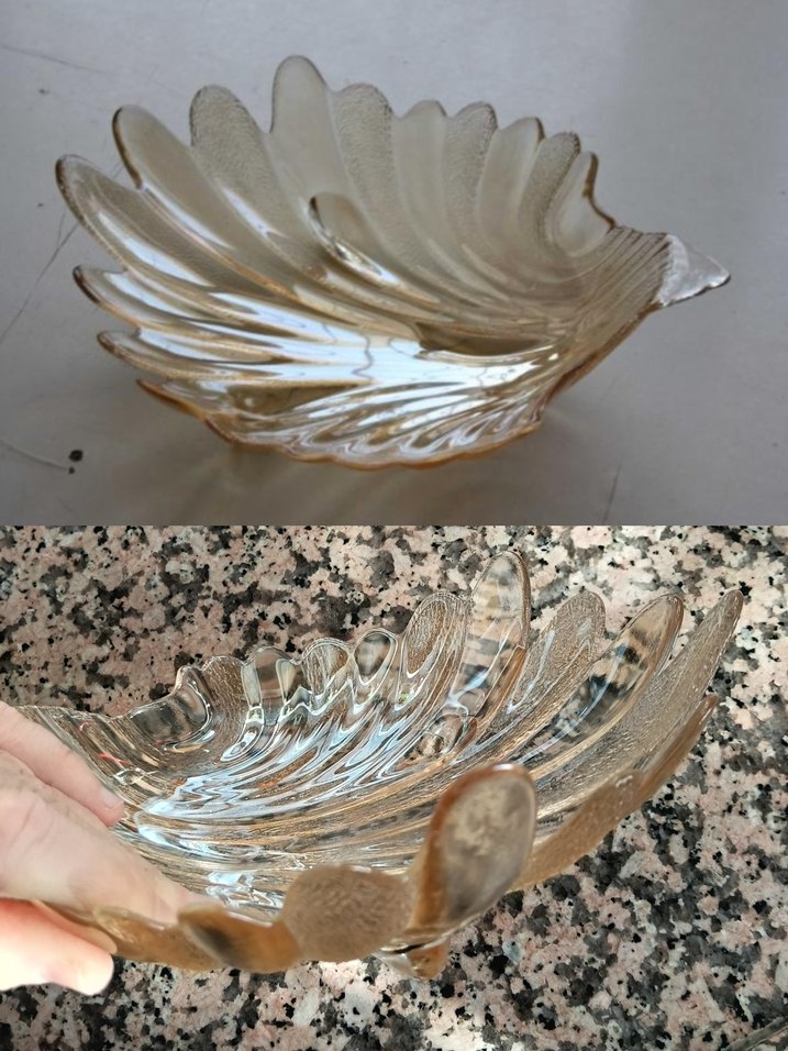 Vintage tarzda şeffaf bej cam kase, kabuk şeklinde tasarım ve pürüzsüz kıvrımlı kenarlara sahiptir. Desensiz ve zarif görünümlüdür. temiz kullanılmış olup bellı belırsız bır çizgi oluşumu mevcut ortada o yüzden fiyatı uygun tuttum. kırık vs yok. #meyvetabağı#dekor#dekorasyon#mutfak#tabak#servis#meyve#denizkabuğu#yaprak#görsel#şık#ayaklı#tezgahüstü#misafir#özelgün#parti#kutlama#etkinlik#bayram#şeker#şekerlik#dal#moda