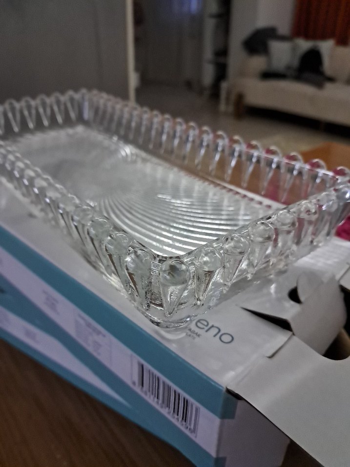 Vintage tarzı, şeffaf dikdörtgen cam tabak, dokulu kenar tasarımıyla klasik bir hava katıyor. Şeffaf malzemesi sadelik ve zarafeti vurgular. ️İLAN AÇTIRIN EDET BELİRTİN