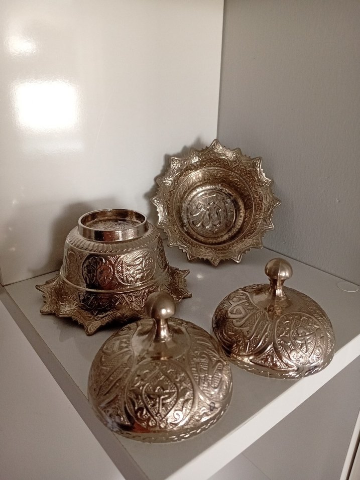 ikili gümüş şekerlikler birinin içinde hafif deformasyonu mevcut