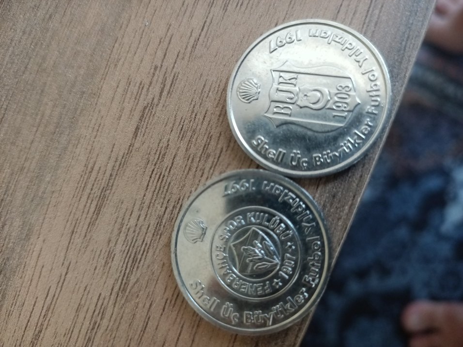 2 adet nadir jeton Gri renkte, geleneksel tarzda. Yazılı detaylar ve sade tasarımlarıyla mütevazı bir görünüm sunar. ️