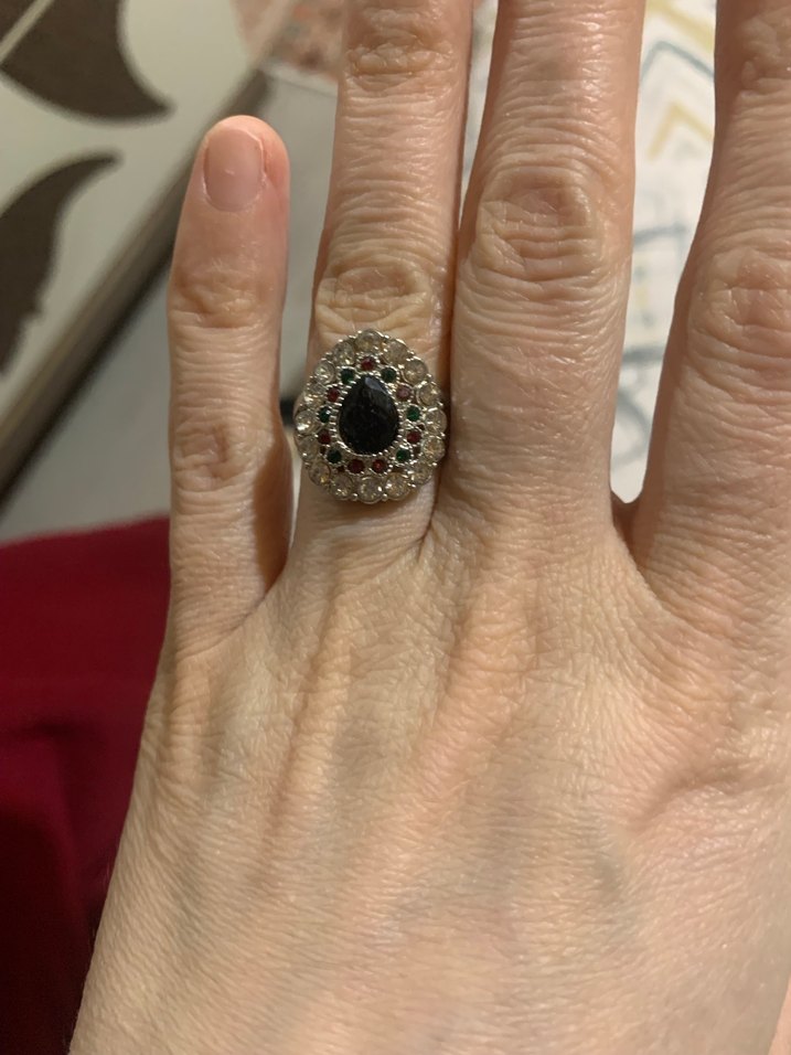 Vintage tarzda, siyah taş ve boncuklu desenlerle süslenmiş bohem yüzük, romantik akşamlar için uygun.
