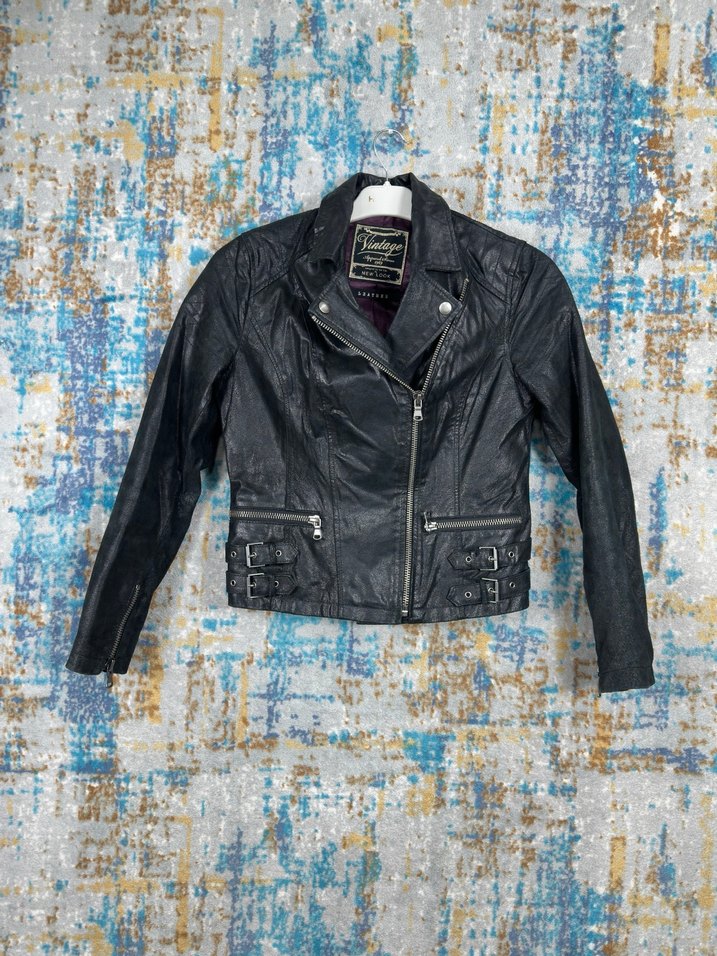 Vintage Siyah Deri Biker Ceket