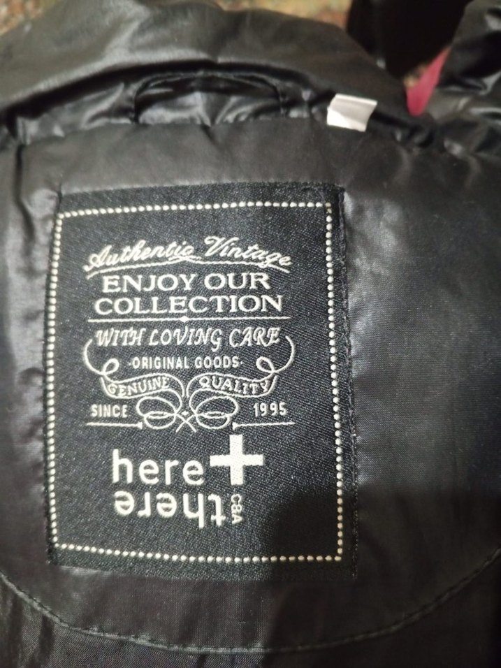 Bu siyah vintage kadın rozeti, 1995'ten beri kalite ve özeni vurgulayan özgün yazılar ve 'here + there' ifadesiyle dikkat çekiyor. ️