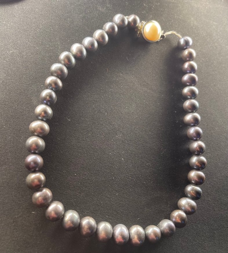 Nadir bulunan tonlarda, koyu renkli (Tavus Kuşu / Peacock) gerçek tatlı su incisi kolye.