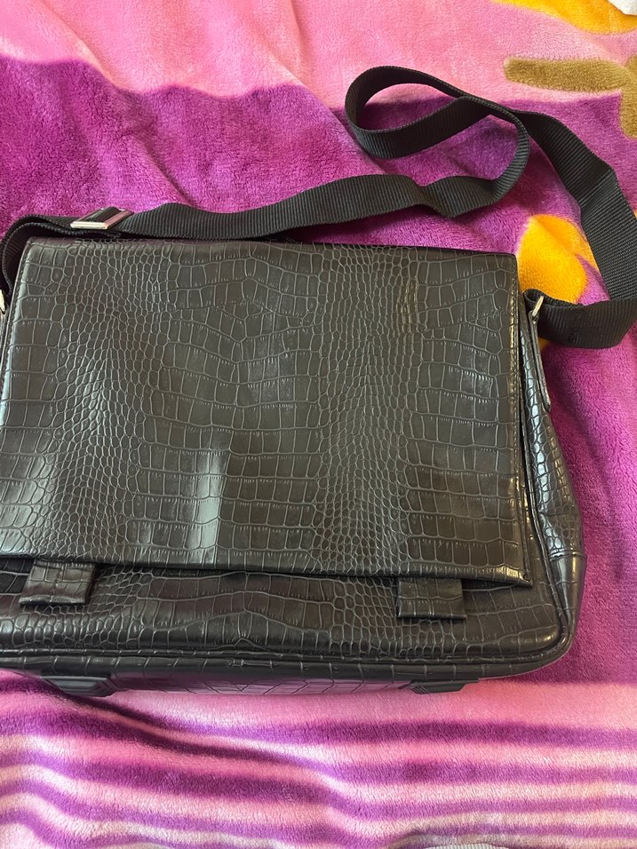 Yılan derisi desenli, tokalı siyah erkek omuz çantası, gotik ve iş tarzını birleştirir.