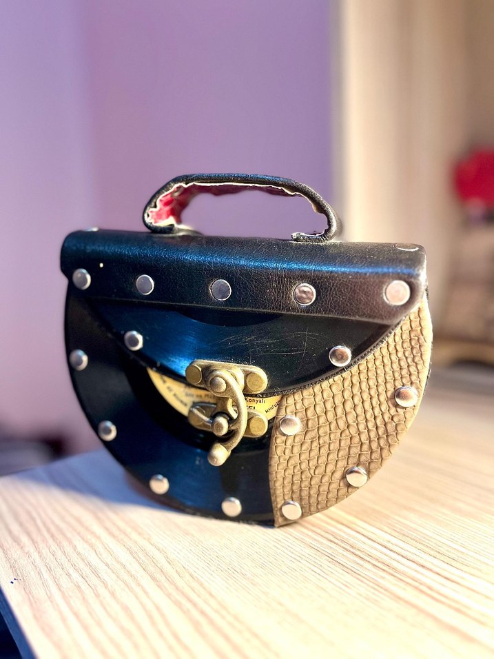 1978 üretim orijinal nostaljik plak çanta. hiç bir yerinde deforme yok. orijinalliği korunmuş, kullanılmamış, muhafaza edilmiştir. el tutma yerinde kırmızı deri kaplı.