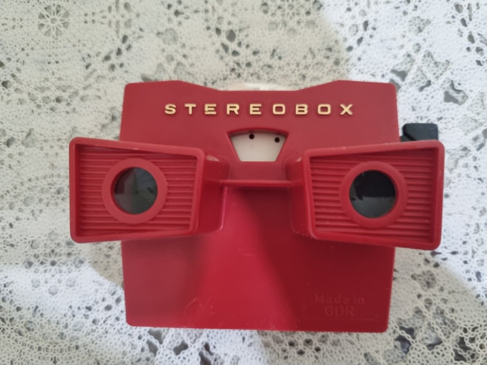 Kırmızı renkli, renkli tasarıma sahip StereoBox dürbün, içindeki karında biraz bozulma vardır..50 ...70 yıllık hacıdan gelme oldugu tahmin edilmektedir