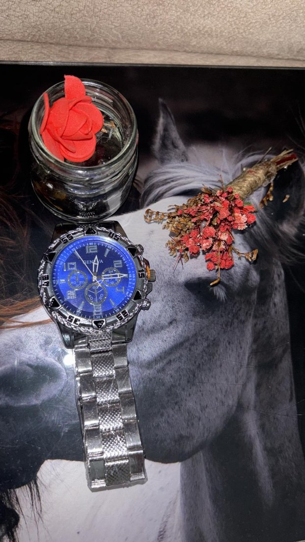 Vintage ve karşı kültür tarzında, canlı mavi kadranlı, gri metal kayışlı erkek kol saati. Klasik ve cesur renk kontrastı bir arada. ⌚