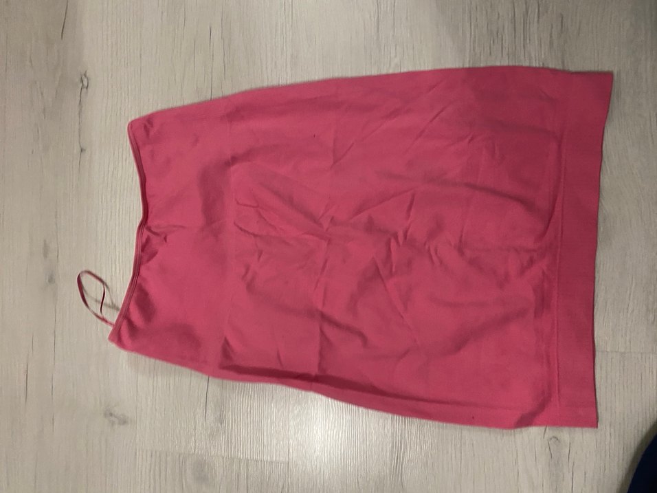 Parlak kırmızı sentetik kumaştan, drapeli ve dar kesim uzun hamile eteği. Günlük kullanıma uygun sade normcore tarzda.