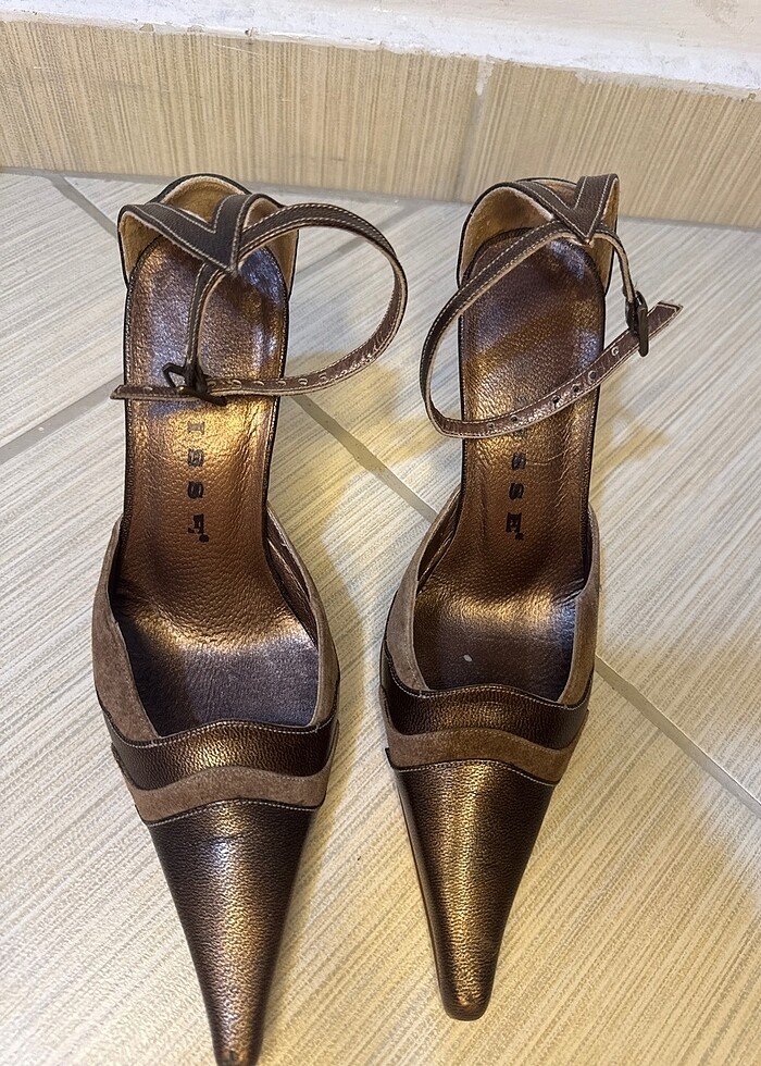 Vintage süet detaylı topuklu ayakabı