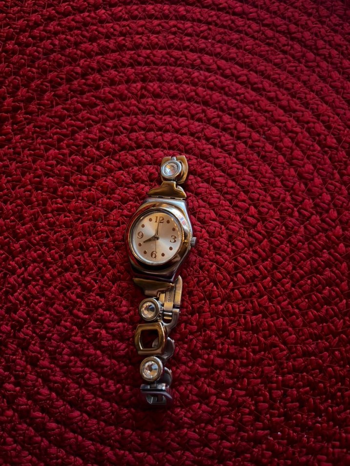 Orijinal Swatch Irony Lady (YSS234G) vintage kadın saati. Swiss Made. Arka kapağını açıp içinde pil var mı yok mu kontrol edemiyorum çünkü kapağı sıkışmış zorlamak istemedim bu yüzden çalışıp çalışmadığını bilemiyorum bu belirsizlikte fiyatıma yansıdı Kasa ve çelik kordonunda yaşına bağlı çok hafif mikro çizikler mevcuttur. Takı-saat formunda şık bir modeldir. Detaylı fotoğraflar ilandadır.
