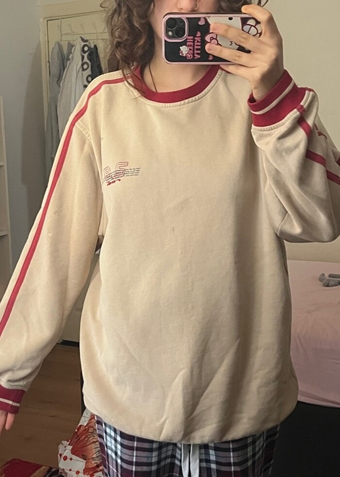 oversize böyle bf cut. Kolunun iç kısmında hafif boya lekesi var. fotoğrafları var