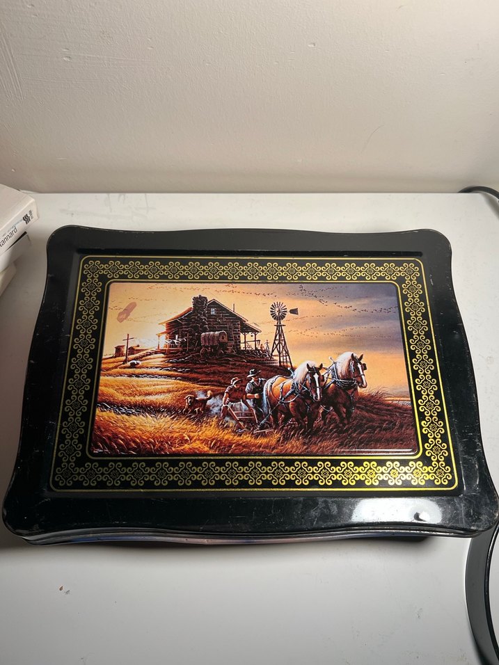Vintage tablolu teneke kutu