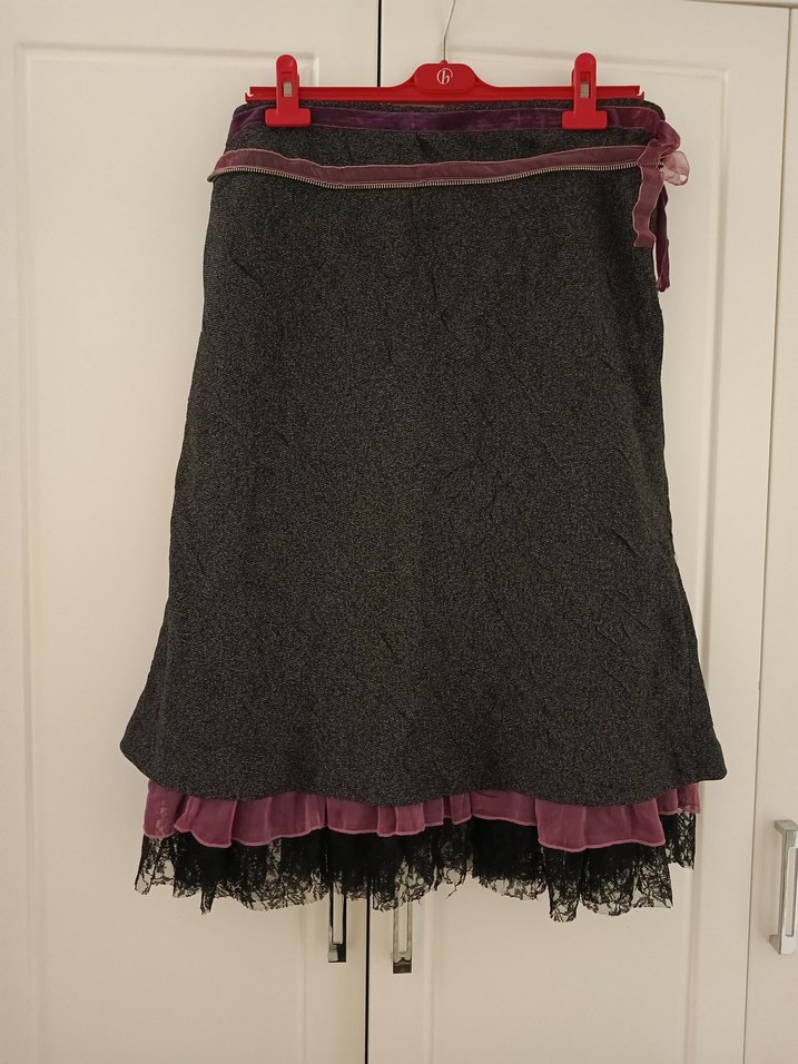 vintage tarz dantel fırfırlı ve kurdele detaylı Gotik Midi Etek