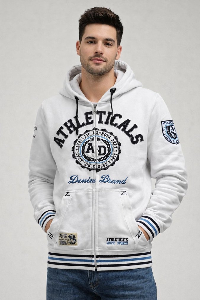 Pamuklu kumaştan, kapüşonlu ve fermuarlı, baskılı desenli sweatshirt. Gri ve beyaz tonlarında, Denim markalı, trend sokak stili için uygun. Orijinal fransa dan hediye geldi