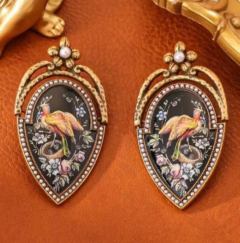 gold kaplama vinrage eski dönem tarzda mineli ve incili çok farklı ve tarz bir modelde küpe ölçüleri görseldedir