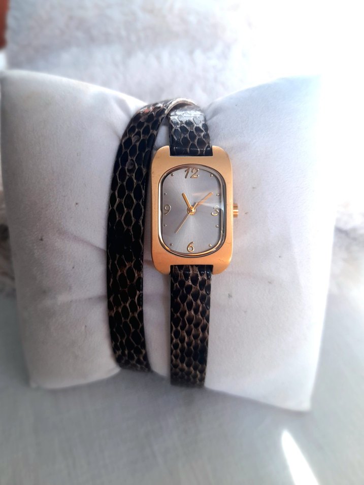 Vintage Tchibo marka kadın kol saati, Yaklaşık 25 yıllıktır. Altın rengi paslanmaz çelik kasa, çift dolamalı kahverengi gerçek deri kayışıyla, çok şık, tarz ve zarif, eşsiz bir modeldir. Hiç kullanılmadı. Pırıl pırıl tertemizdir. Kusursuzdur. Nadir bulunur. Tchibo mağazasından alındı. Pil yoktur. Pil ile, fiyat farkı olur. Ölçüleri kasa boyu 3 cm Eni 2 cm dir. Kayış uzunluğu 39 cm Eni 1 cm dir.