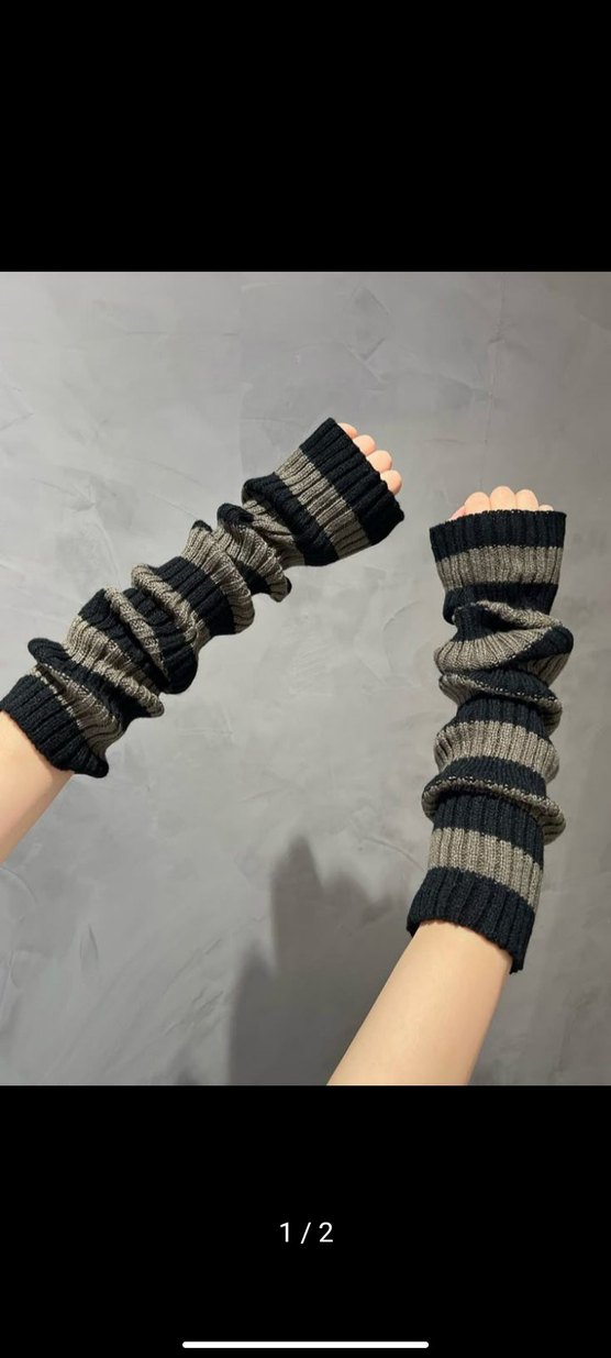 Gri ve siyah çizgili, örgü yün tozluklar. Günlük kullanım için uygun, rahat ve gotik tarzda .