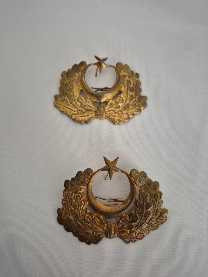 VİNTAGE TSK SUBAY ŞAPKA KOKARTI...5x7 cm boyutunda...1950-1980 Yılları arasında Eski tip TSK subay şapkalarından çıkma, orijinal pirinç kokartlar.ADET FİYATIDIR