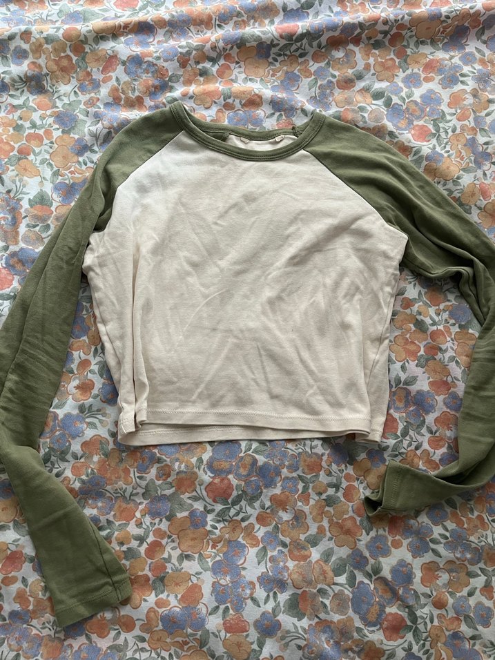 Pamuk kumaştan, uzun kollu ve bol kesim kız tişörtü. Haki ve pastel renklerde, sade ve rahat bir stil sunar. Croptur