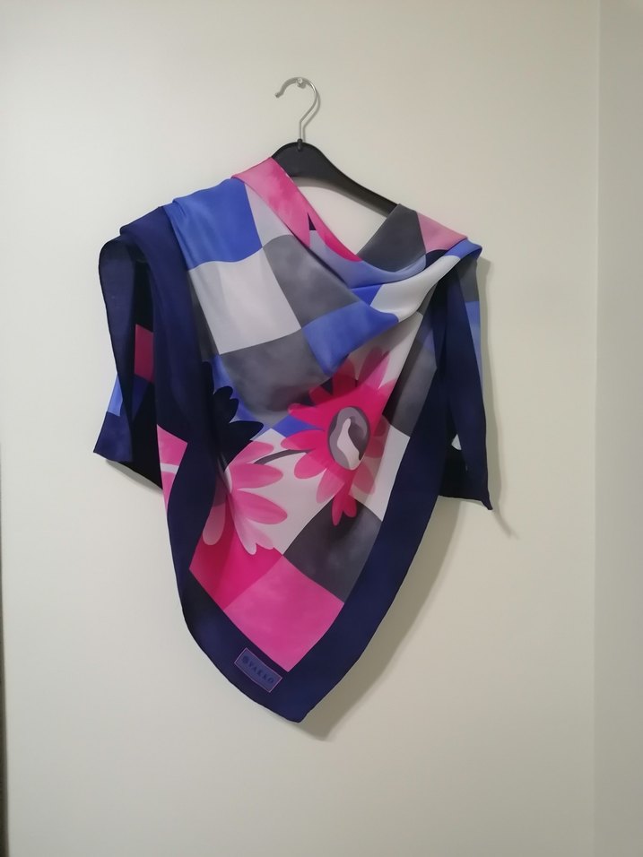 Vintage vakko Kadınlar için çok renkli, koyu tonlarda modern desenli, %100 ipek kumaştan drapeli eşarp . Moda ve avangart tarz için uygun.