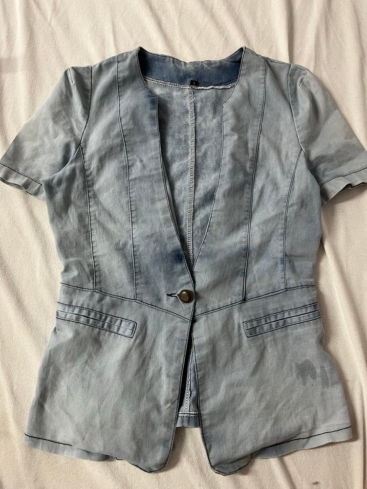 Vintage Y2K Düğmeli Kısa Kollu Kadın Kot Ceket