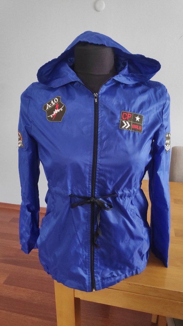 Parlak mavi, fermuarlı ve uzun kollu, işlemeli detaylı kadın ceketi. Normal boyda, kapüşonlu ve dar kesim, dış mekan için uygun. #2000 #y2k #lolita #vintage #gotik #efsane #koleksiyon #tarz #giyim