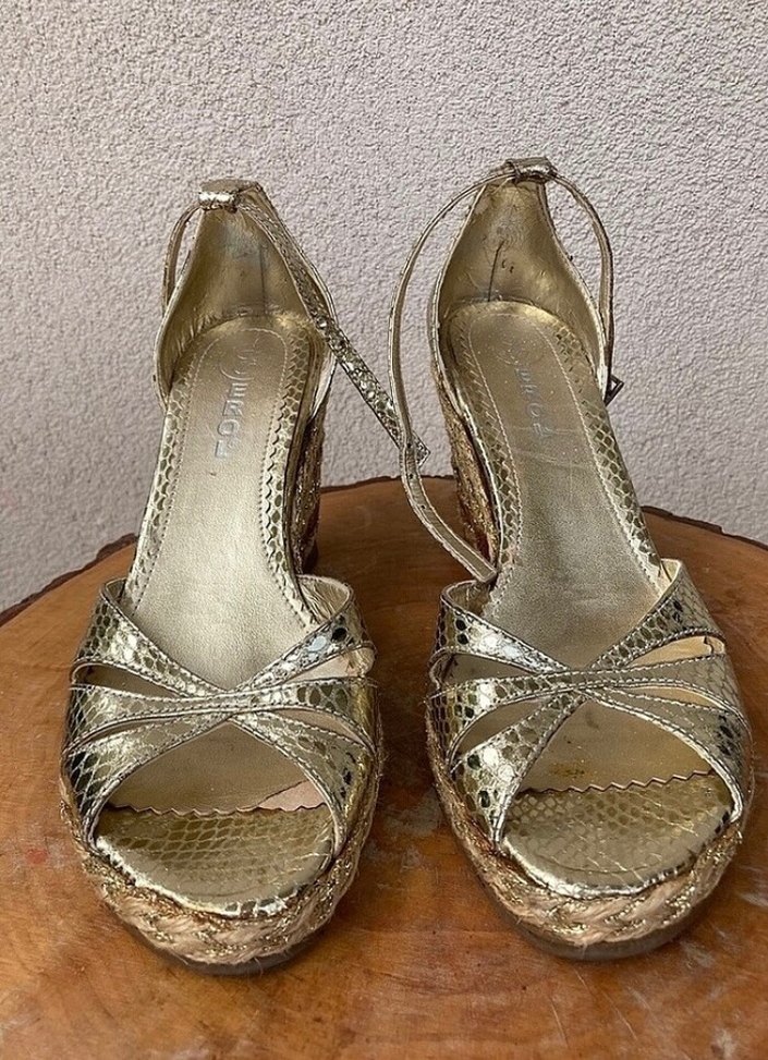 Vintage Yılan Desenli Altın Dolgu Topuklu Sandalet 34-35 numara.