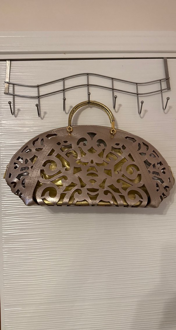 Vintage tarzda, kahverengi yılan desenli deri çanta, zincir detaylara sahip. Metalik altın iç yüzeyiyle özgün kesim tasarımı bir arada sunuyor. İçi çıkıyor ayrıca kullanıla biliyor