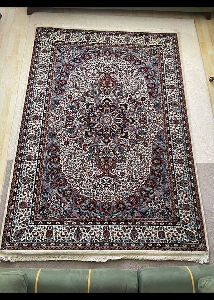 Halıyı yıkattım tertemiz pırıl pırıl eski yün halılardan TÜY TOPLAYAN NAYLON DEĞİL markası çıkmış temsili olarak yazıcam daha püsküllerinin ipi dahi kesilmemiş bütün olarak duruyor kayınvalidemden kalan halı son 2 fotoda arkada bi çizgi var ön yüzünüde çektim bişey yoktur yıkattığım için bu fiyat sayfamda 6 metrekare aynı bu halılardan yıkanmamış var fiyat büyük olmasına rağmen daha düşük yılatmadığım için alan güle güle kullansın