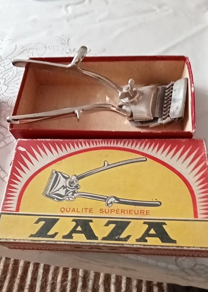 Vintağe Zaza marka elde saç kesme Makinesi sıfır ürün kullanılmadı kutusunda yedek yay yanında