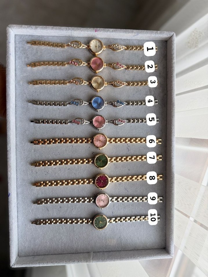 Vintage bohem tarzda, zincir detaylı farklı açık ve çok renkli kadın kol saatleri.⌚