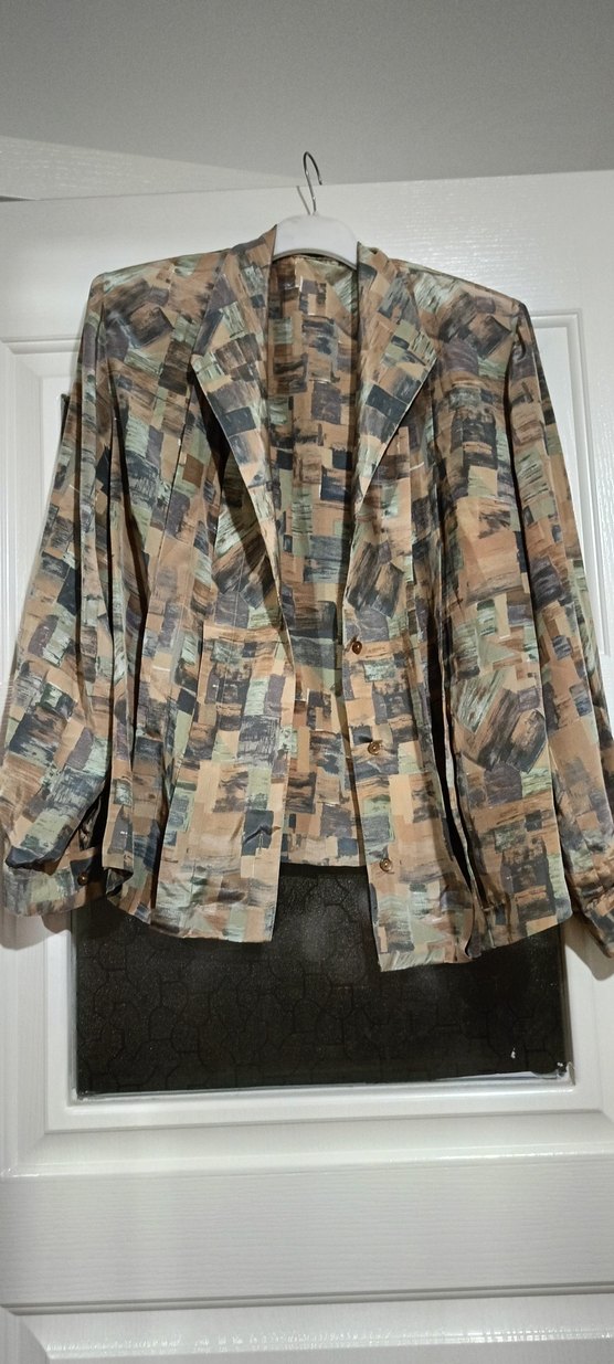 Vintega saten Düğmeli Kamuflaj Desenli Uzun Kadın Gömlek