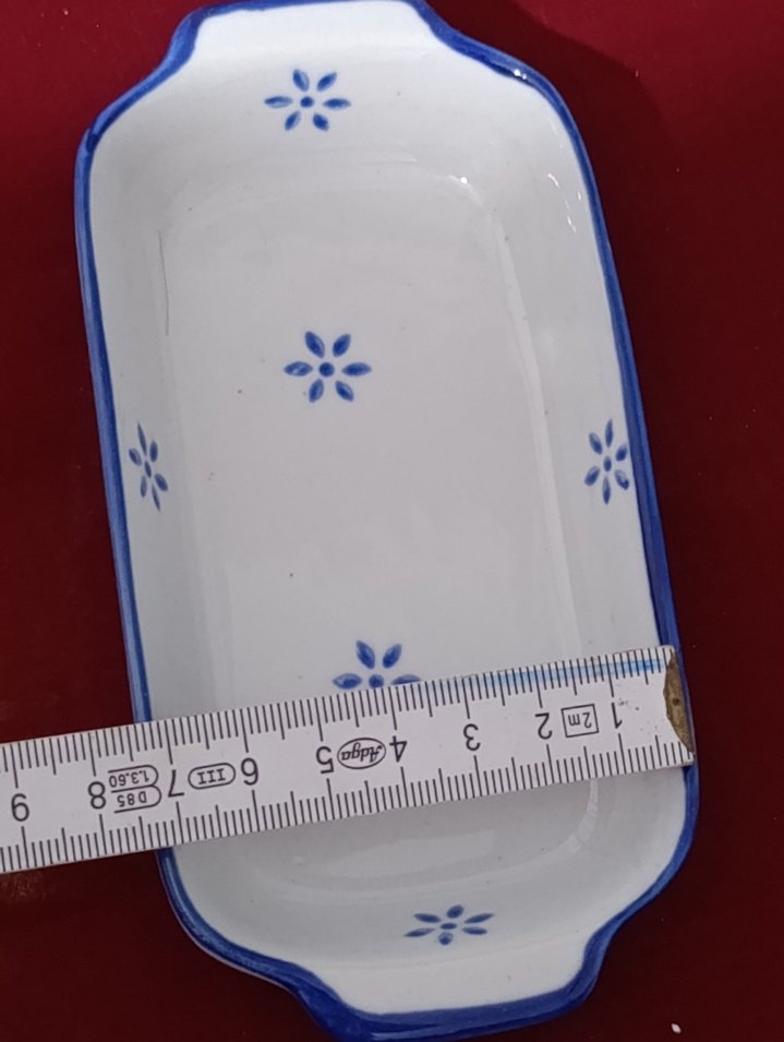 vintege Yaklaşık 15 cm uzunluğunda, koyu mavi kenarlı ve küçük çiçek desenli dikdörtgen porselen saklama kabı. ️ sahibine hayırlı olsun iade kabul etmiyorum